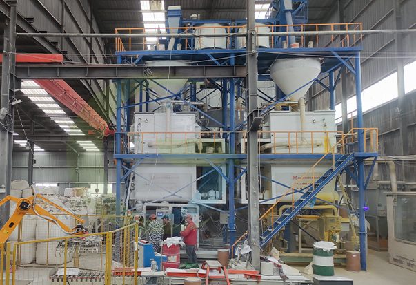 All raw materials are manually measured and fed. The daily output is 50 to 80 tons, and 4 to 5 workers are required.